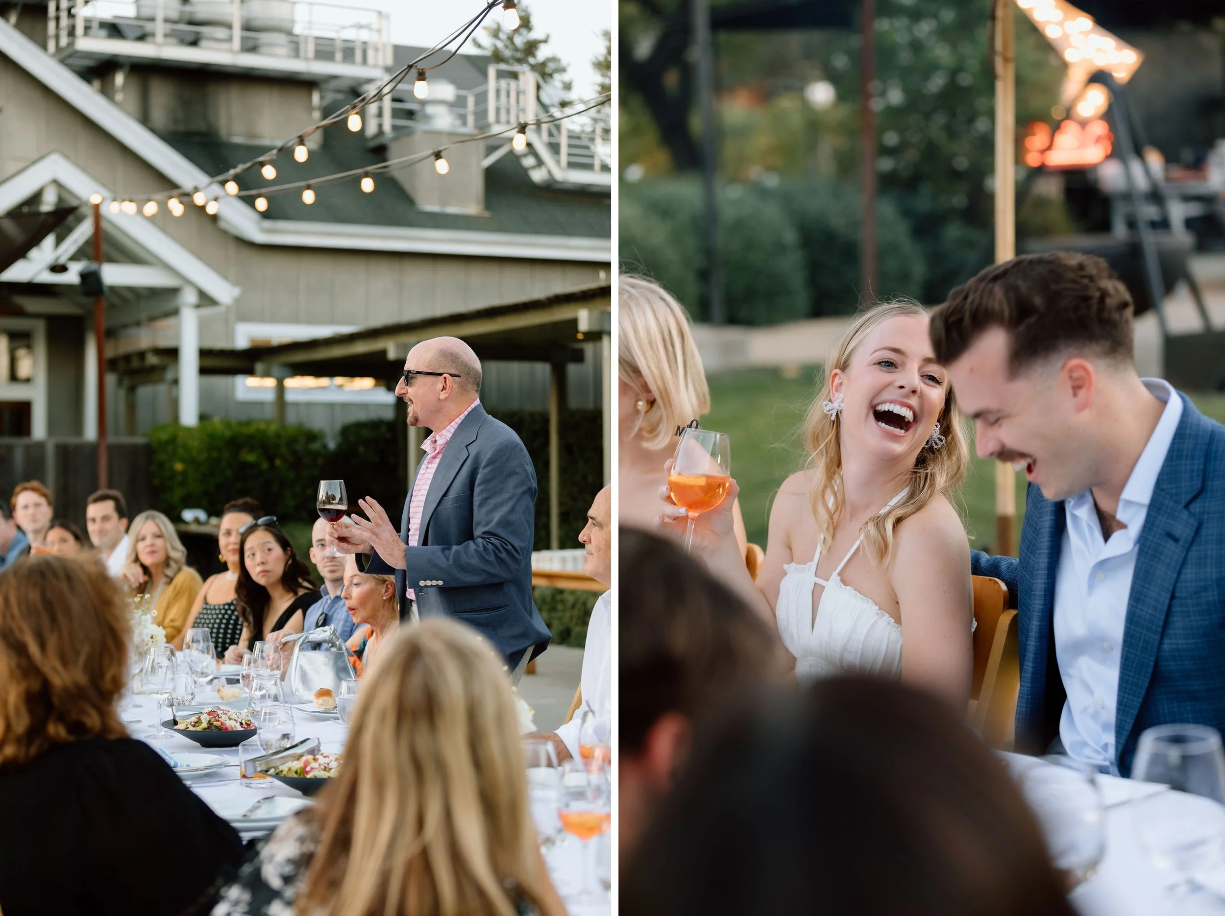 Having your welcome party captured is such a beautiful way to set the tone for your entire wedding celebration. Itβs a few short hours, but theyβre filled with so much meaning. Hugs from loved ones arriving, laughter over shared stories, heartfelt speeches, and those quiet, emotional moments that often happen before the big day begins. These are the memories that ground the weekend, reminding you of why youβre all there together. Olivia and Markβs rehearsal dinner at Farmstead at Long Meadow Ranch in St. Helena was a perfect example: an open-fire dinner under the stars, glowing light, warm conversations, and an ambiance that felt both intimate and magical. Moments like these deserve to be remembered just as much as the wedding day itself.